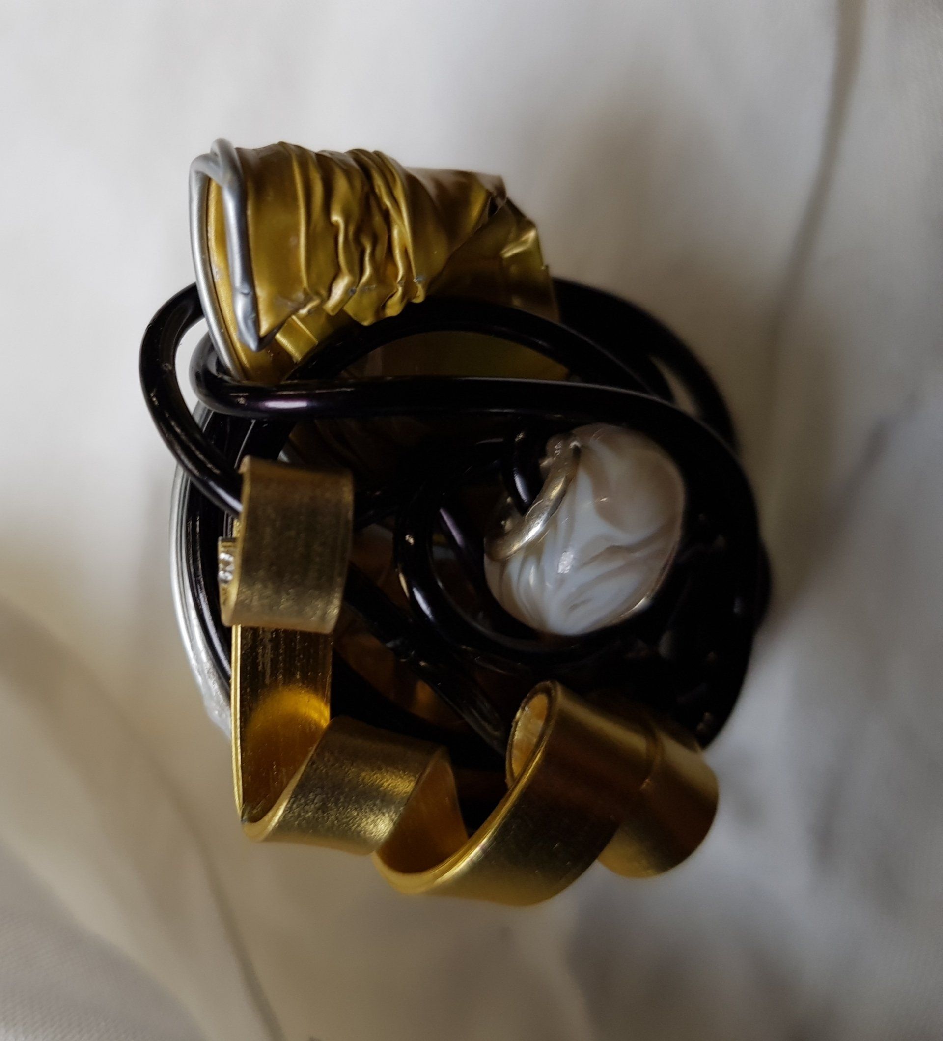 Vervaardigd van zilverdraad en /of gecoate zilverdraad.