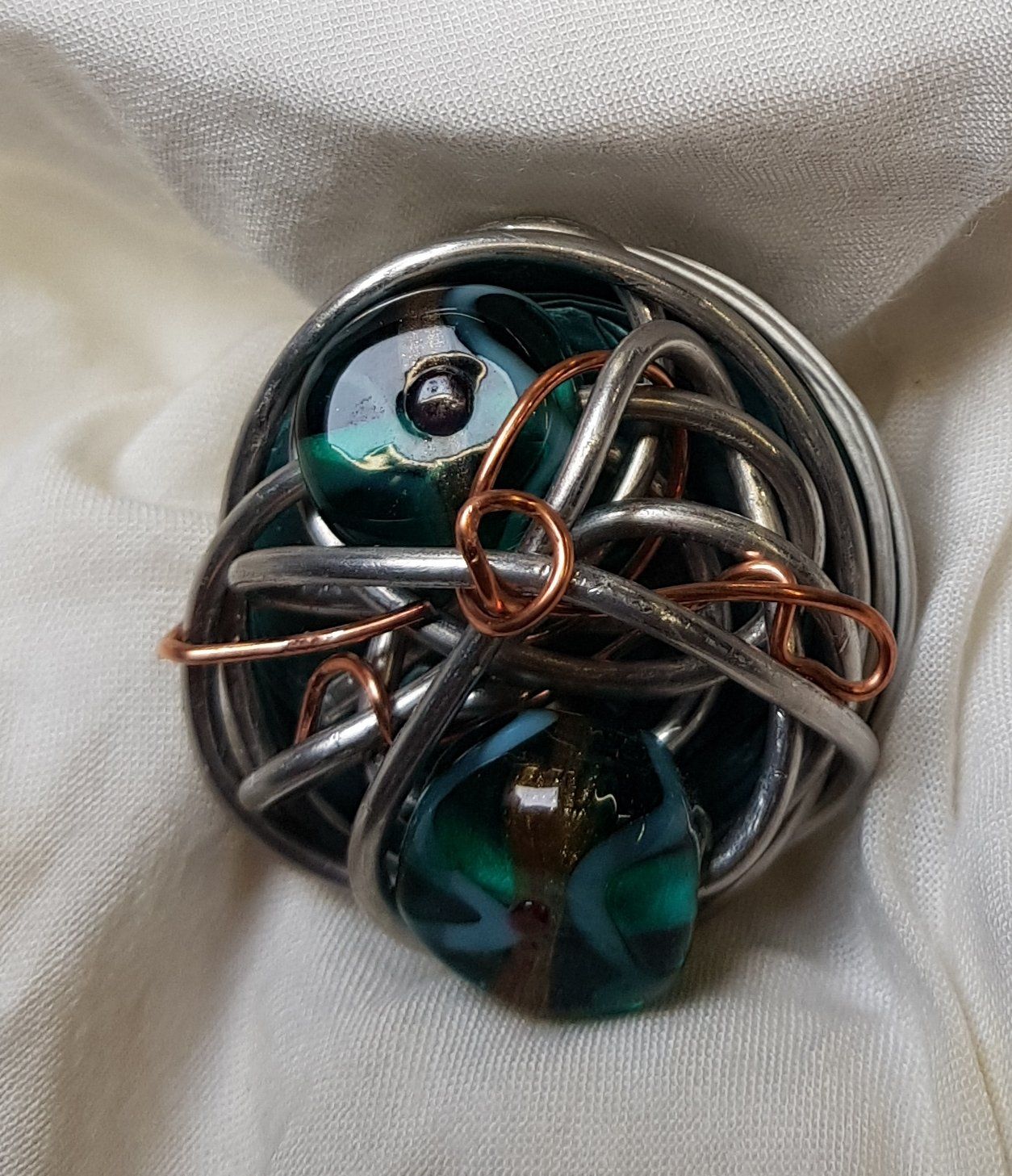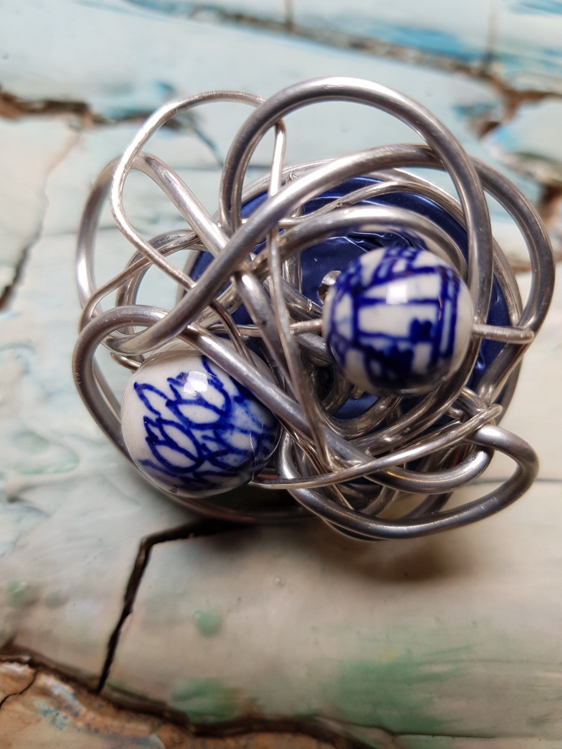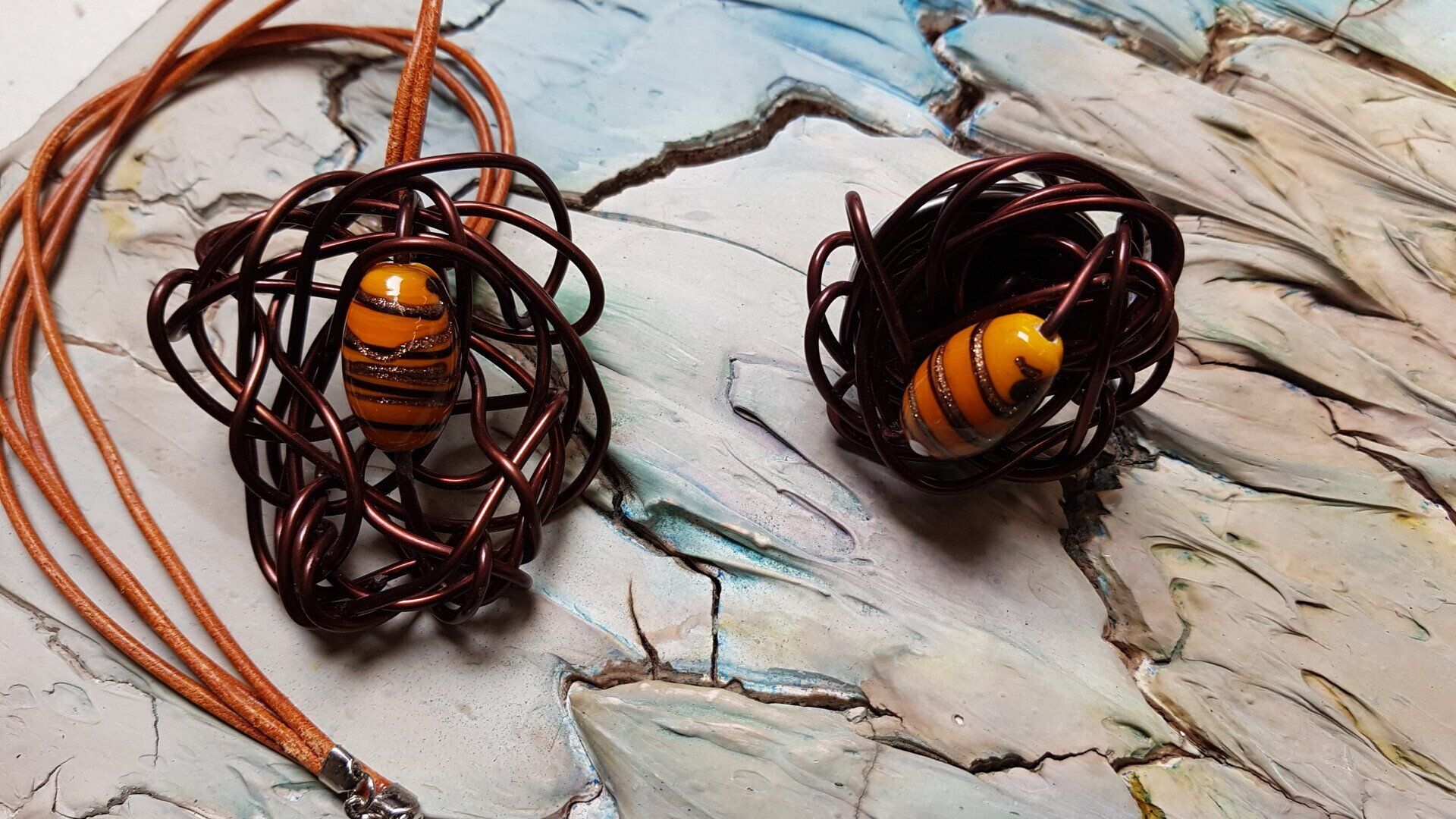 Gebruik wordt gemaakt van o.a. handgeblazen glaskralen.