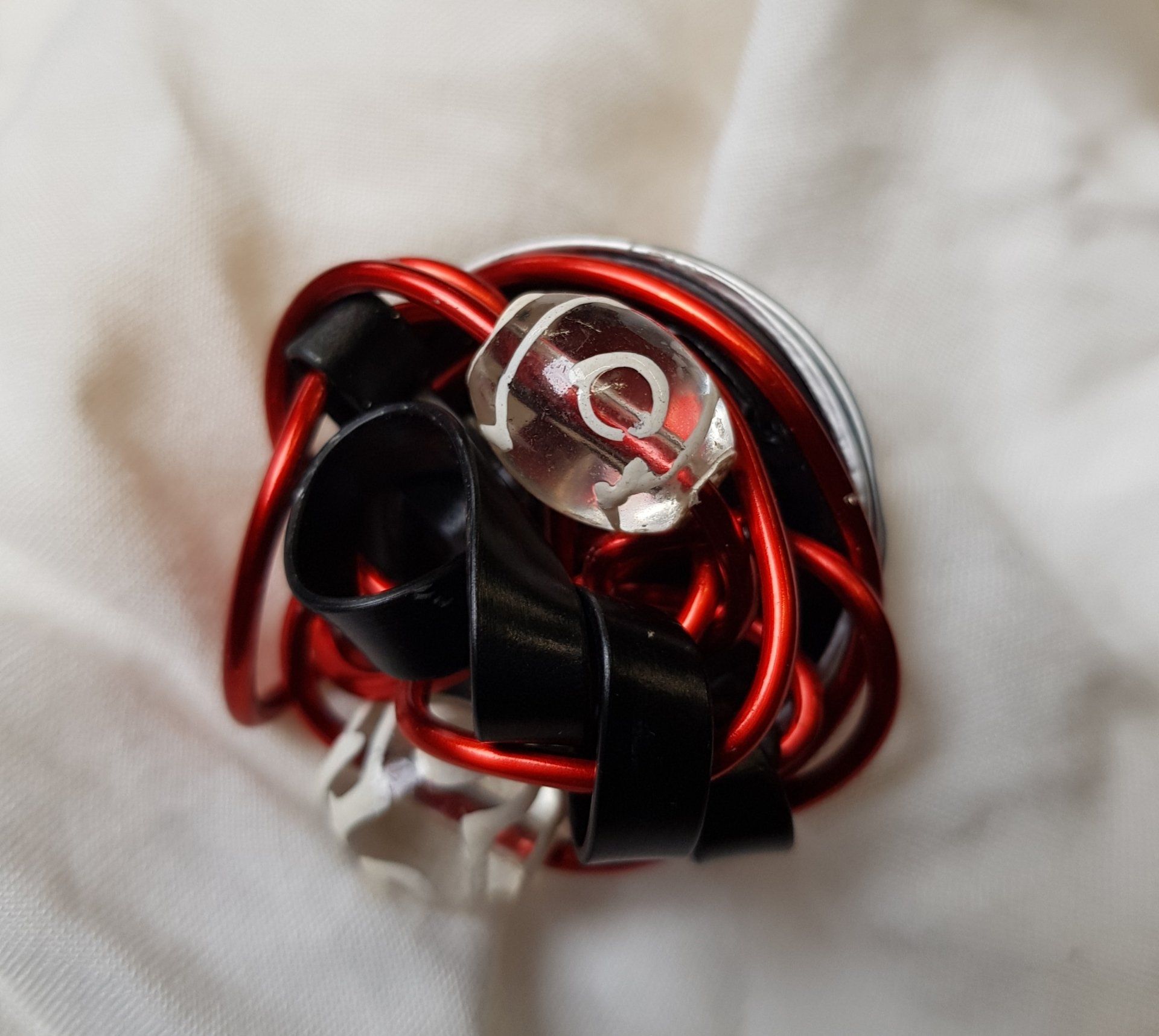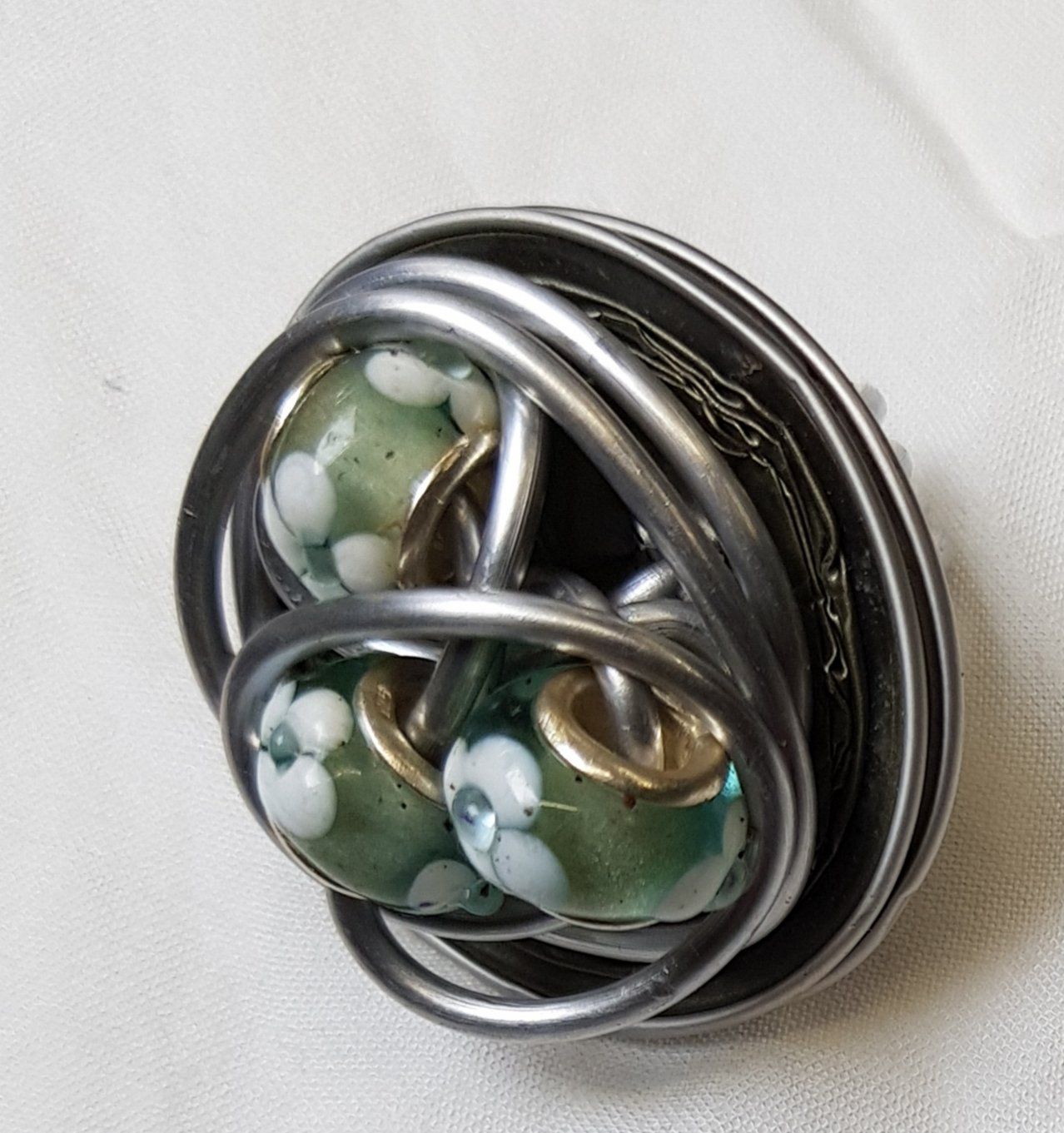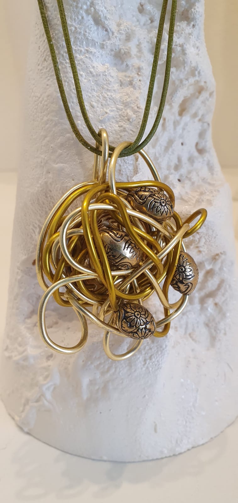 Gebruik wordt gemaakt van o.a. handgeblazen glaskralen.